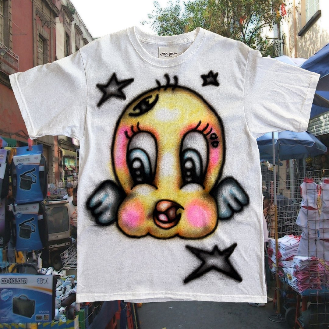 Graphic airbrush t-shirt featuring original Astrokids artwork inspired by vintage cartoon and carnival Y2K airbrush aesthetics. ⌖⌖⌖